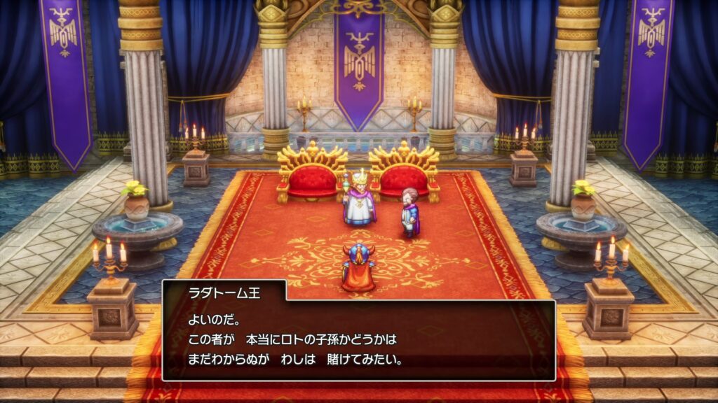 「夢を見ました」だけだとちょっとロトの子孫である証拠としては弱いが、王は信じてくれた。