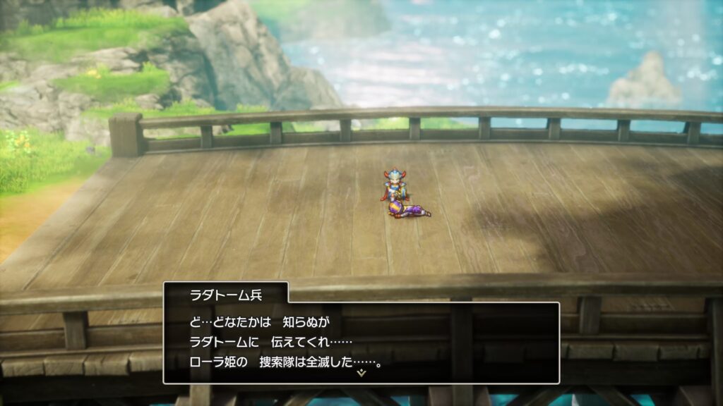 マイラに向かう途中の橋で、倒れているラダトーム兵を発見。