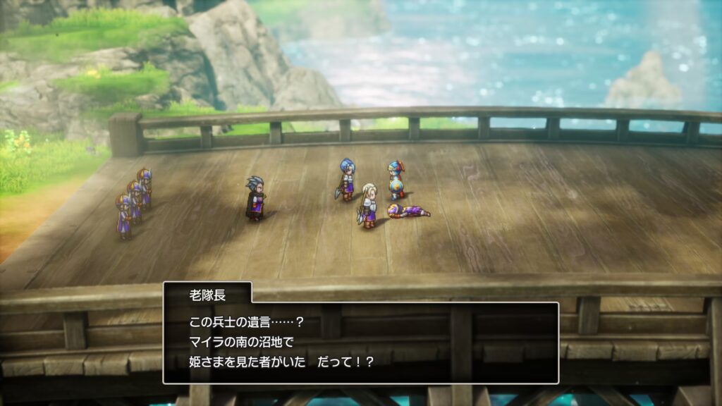 老隊長に兵士の遺言を伝えると、彼らはローラ姫を探しに沼地へ向かった。
