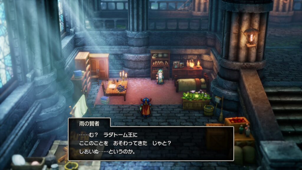 お告げを賢者に話すと、たしかにルビスの助けがあればまだなんとかなるかもしれんので、ルビスを召喚することができれば勇者と認めようと言う。