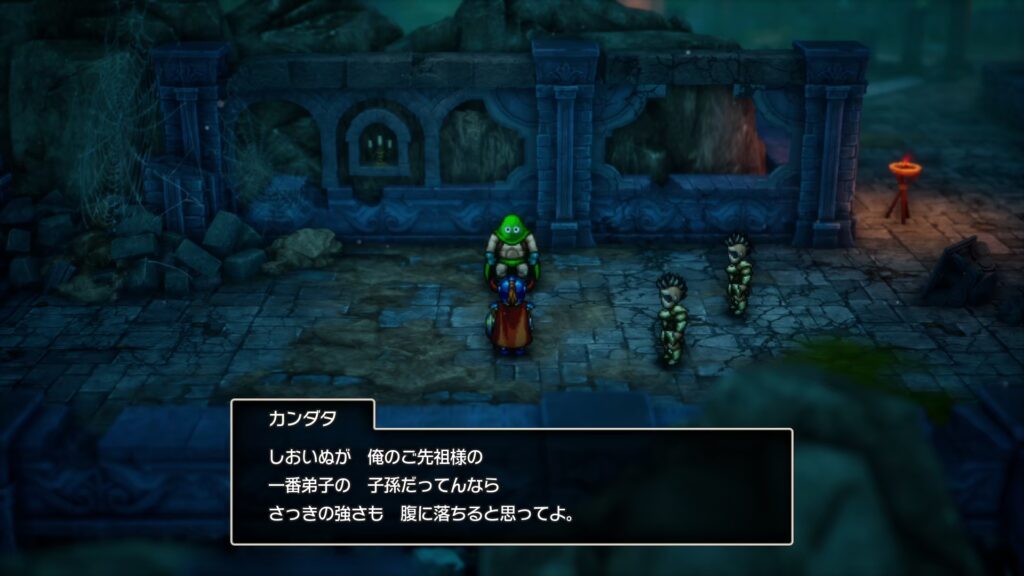 戦闘後、カンダタとの会話でロトの子孫だと言うと、信じてくれた。