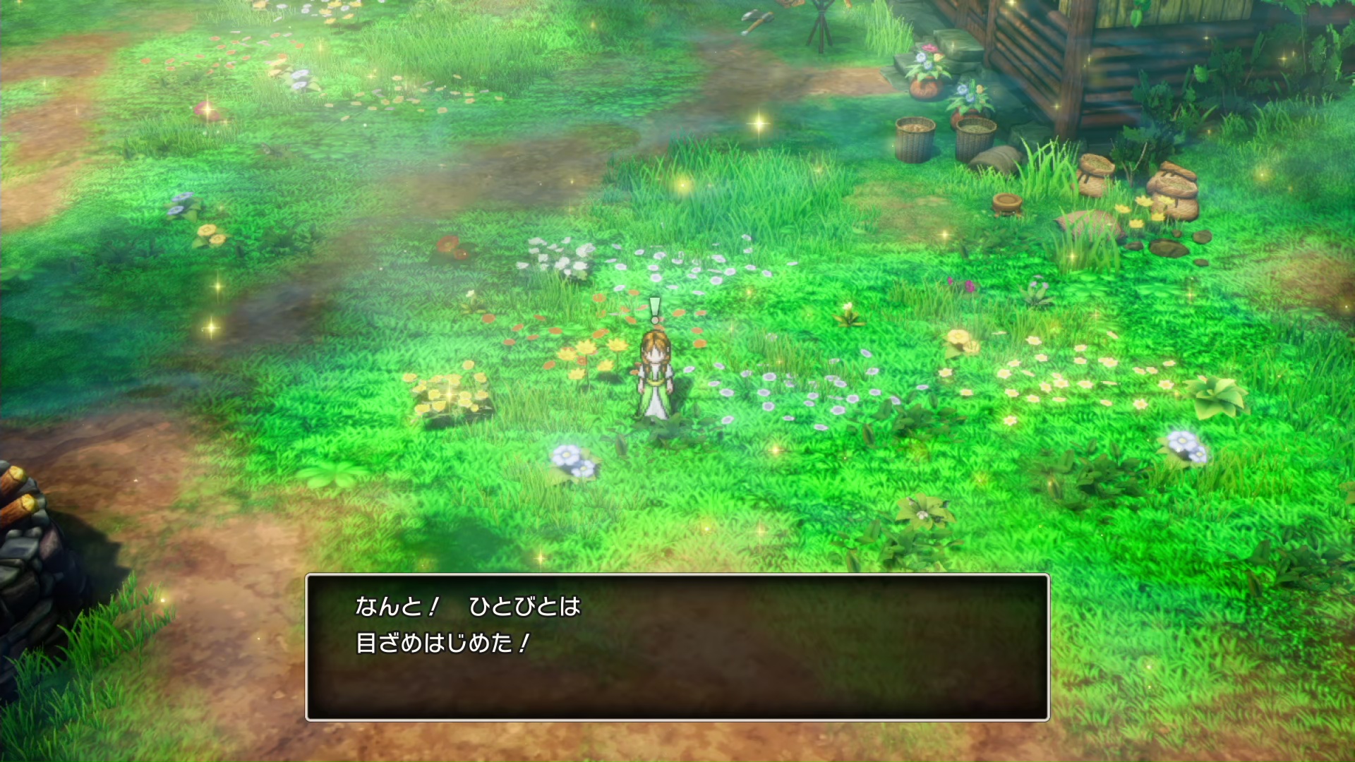 女王からもらっためざめのこなを使うと、ノアニールの村人は眠りから覚めた。