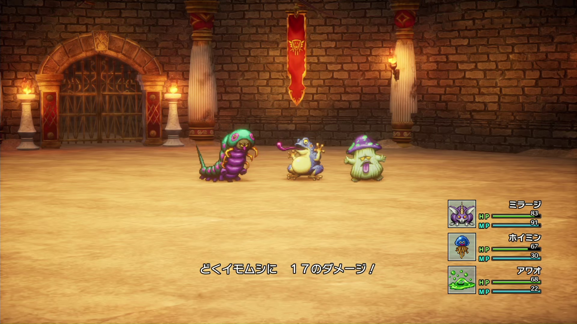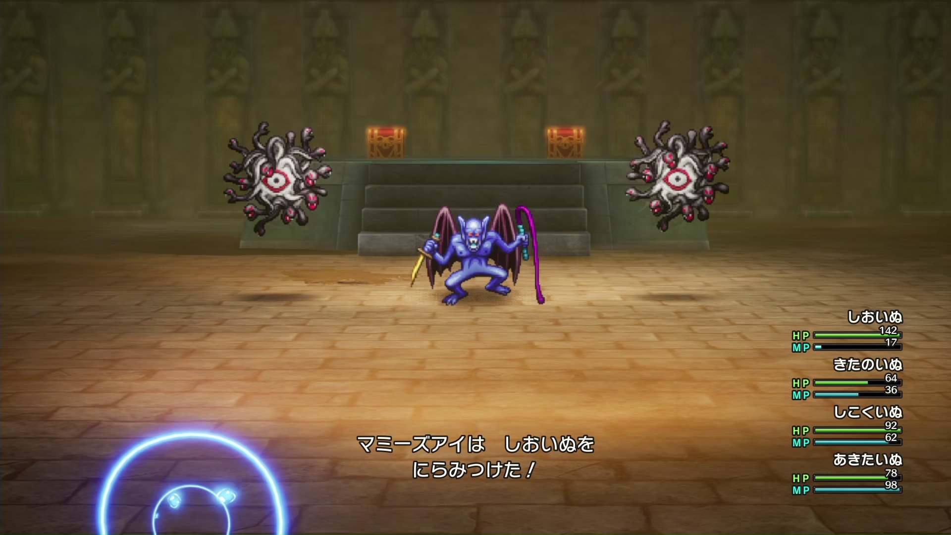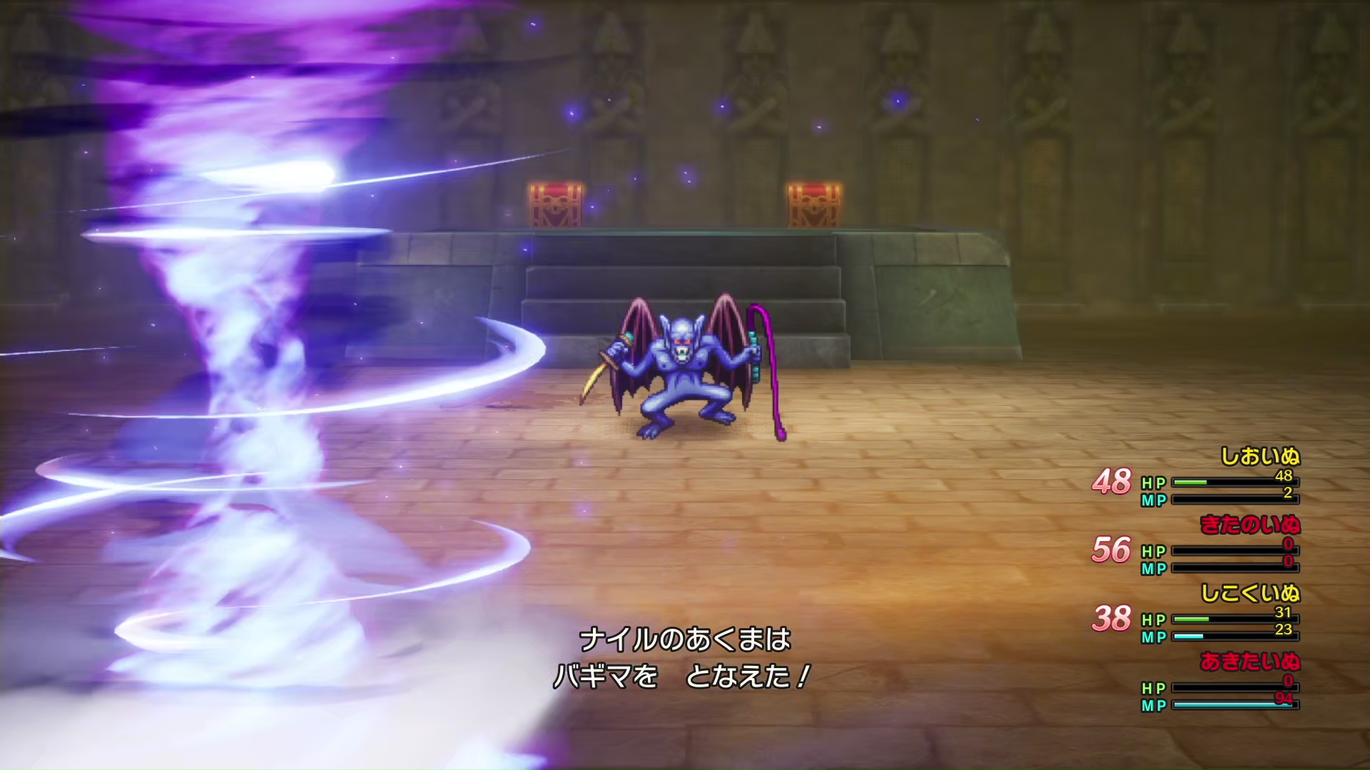 真ん中のナイルのあくまと左右のマミーズアイ、どっちも強かった。集中攻撃で目玉を倒したらやっと楽になるかと思いきや、あくま一人になったあたりからバギマ撃ってきてきつい。