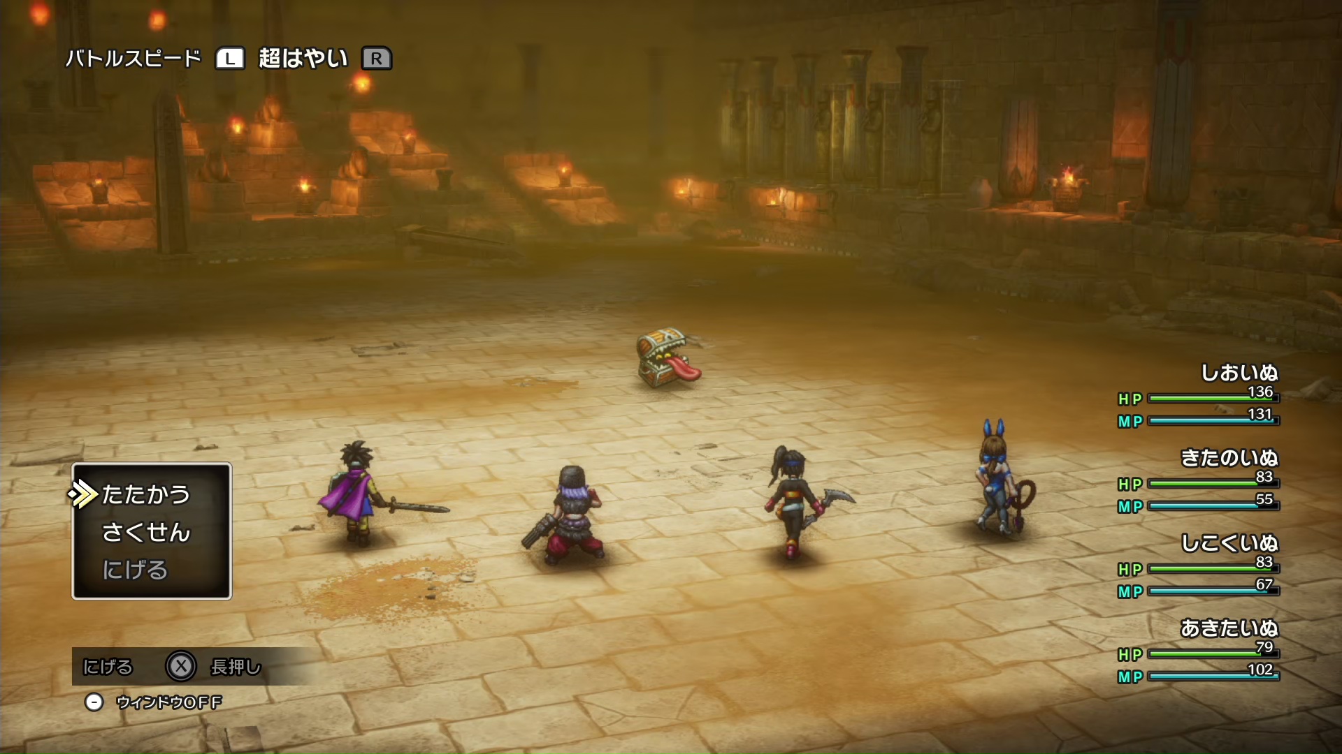 今作はAIがアイテムも適宜使ってくれるので、ねむりの杖とかかなり助かる。ちから弱いし特技もない遊び人に持たせるとよい。