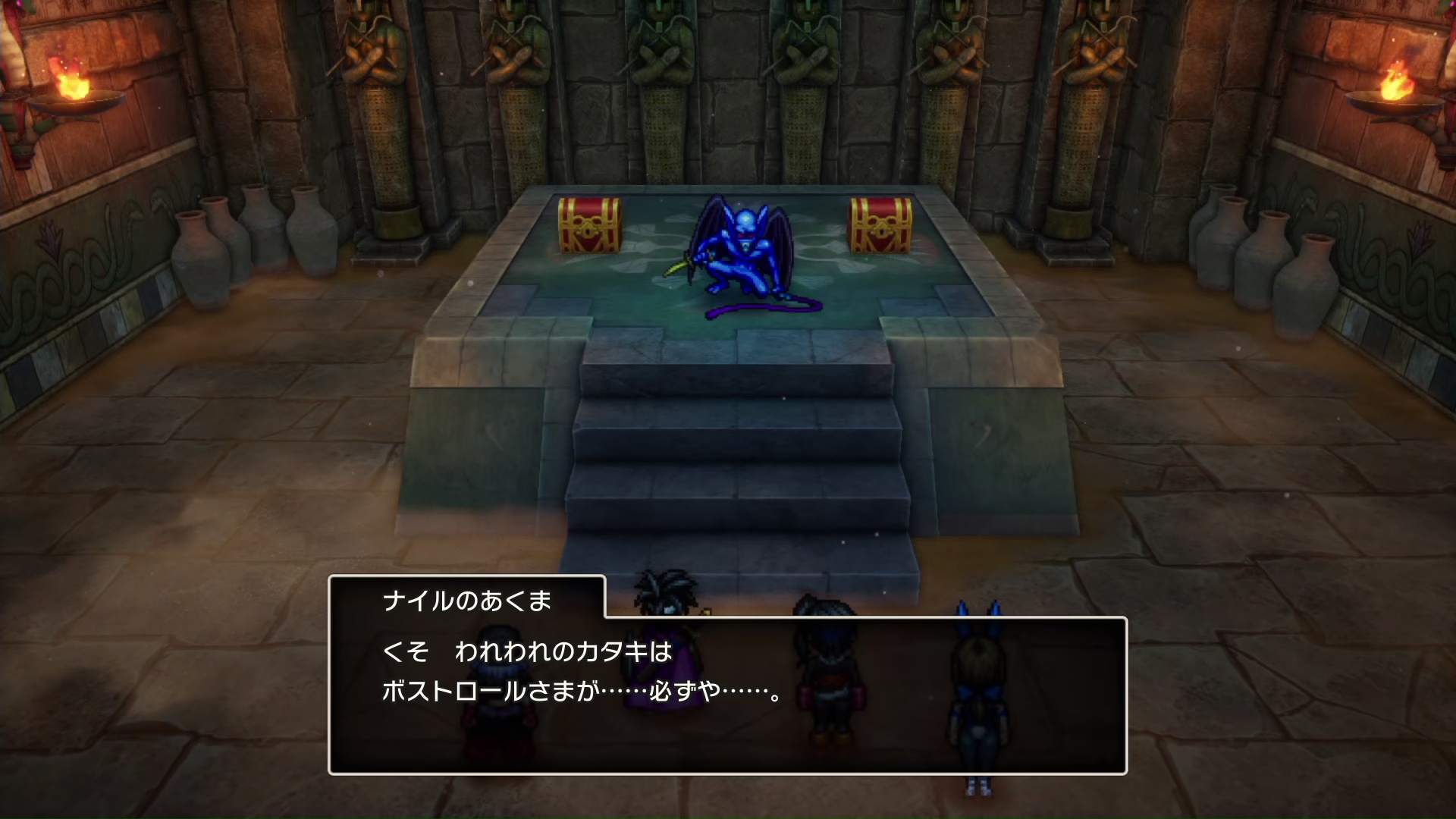 ピラミッドって苦労した思い出あるけど、楽勝すぎるな~とサクサク進んでたら、なんか奥にボスがいた。ナイルのあくま。こんなの昔いなかったよな?