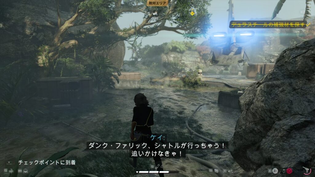 島の端にあるはずのスピーダーがなぜか真後ろにある1ので、飛び乗ってシャトルを追う。
