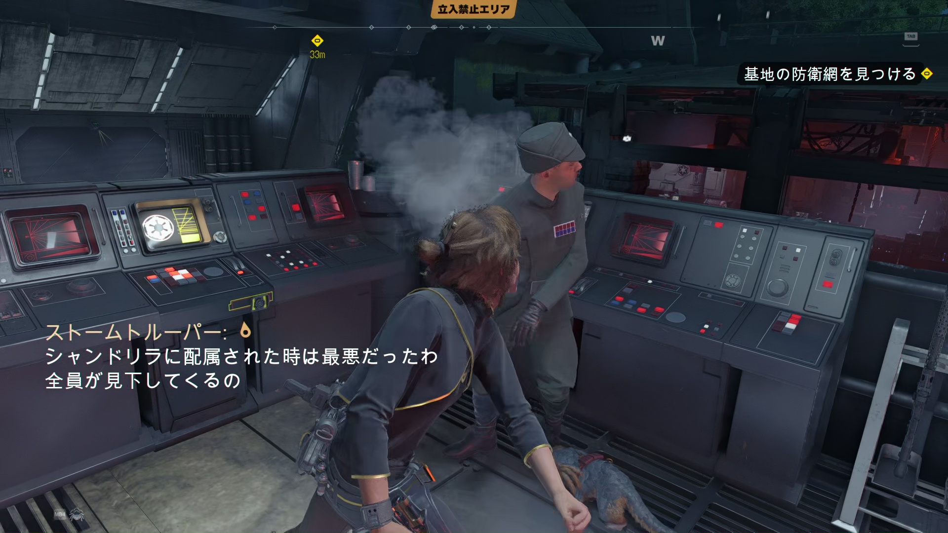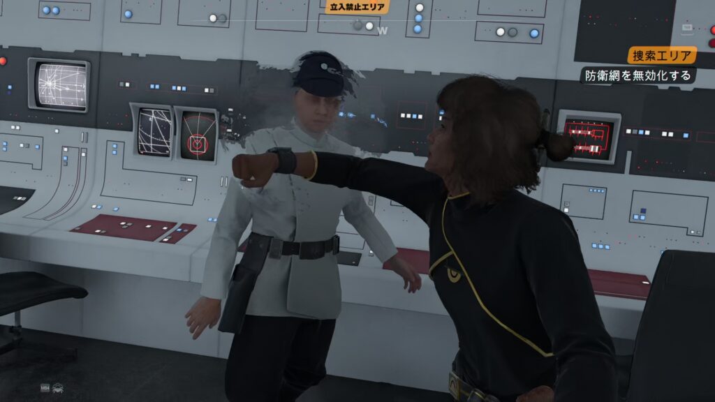 反乱軍が中に入れるよう、基地の防衛網を停止しに行く。