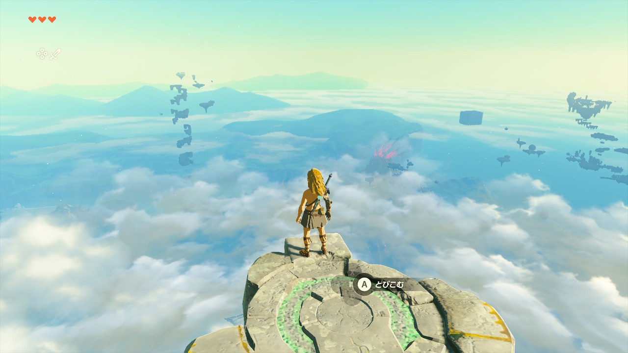 目覚めた洞窟を抜けると、そこには島が浮かんでいるスカイウォードソードっぽい世界が!