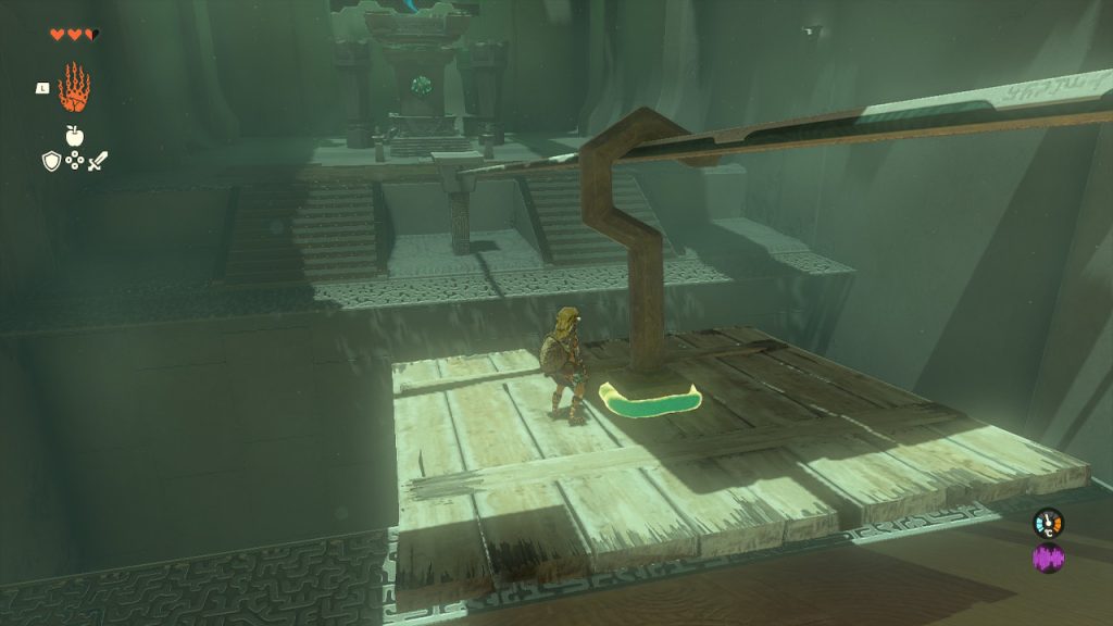 ゼルダがいるという時の神殿に入りたいが、右腕の力が足りず開かんらしい。ラウルくんが言うてた