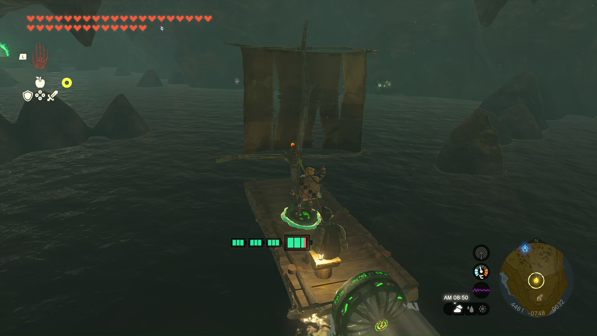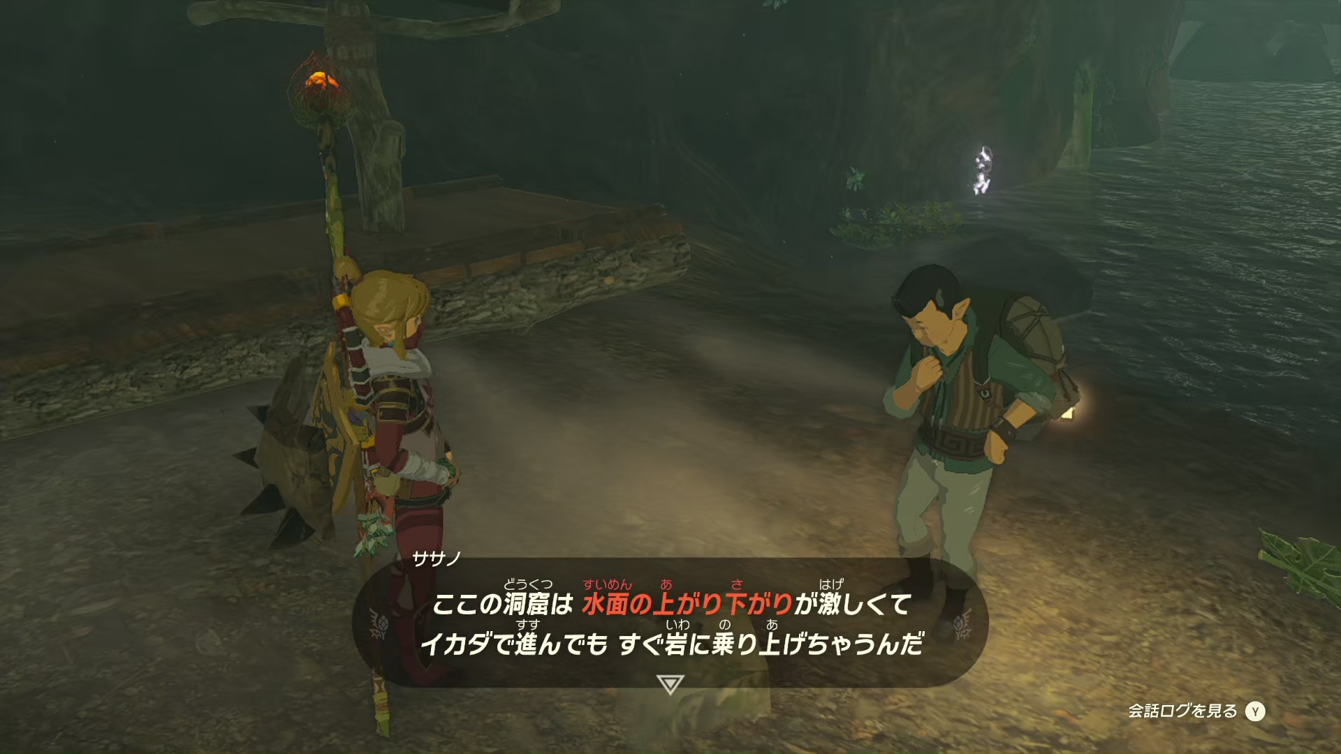 最後、ターム岬にある洞窟で、ササノくんをイカダに乗せて洞窟の奥まで運ぶチャレンジをやる。