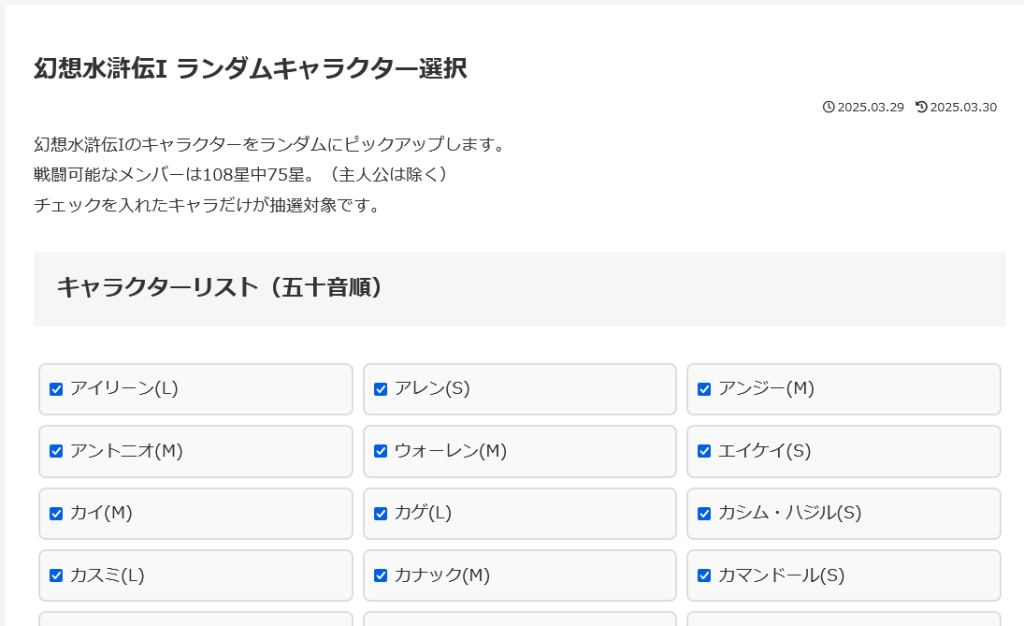 幻想水滸伝I キャラクターランダムピッカー